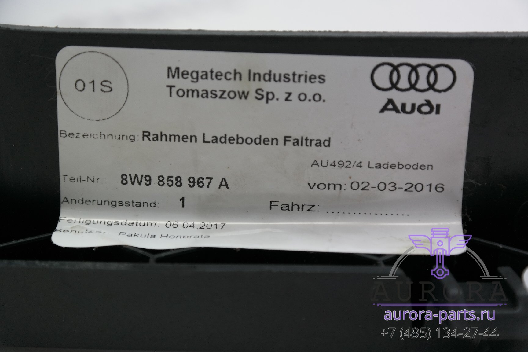 Рамка ниши запасного колеса для Audi A4 B9 2015-2019